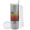 VHS sony dynamicron T-120, Tumbler stainless steel Silver 600ml, with metal straw & cleaning brush