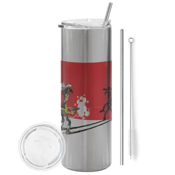Lucky Luke shadows, Tumbler stainless steel Silver 600ml, with metal straw & cleaning brush
