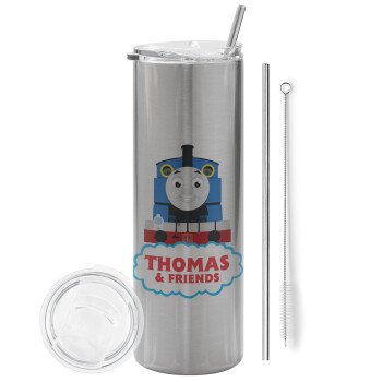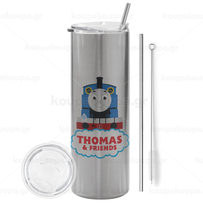 Τόμας το τρενάκι, Tumbler stainless steel Silver 600ml, with metal straw & cleaning brush