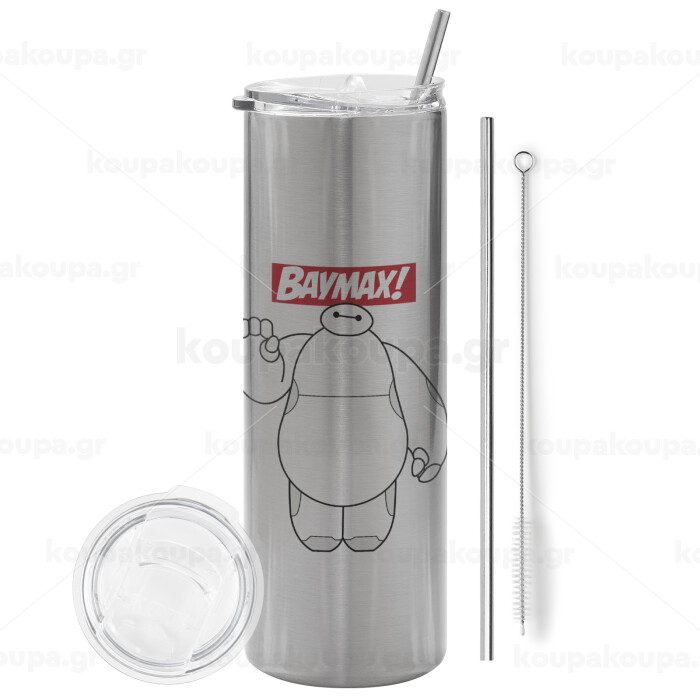 Baymax hi, Tumbler stainless steel Silver 600ml, with metal straw & cleaning brush