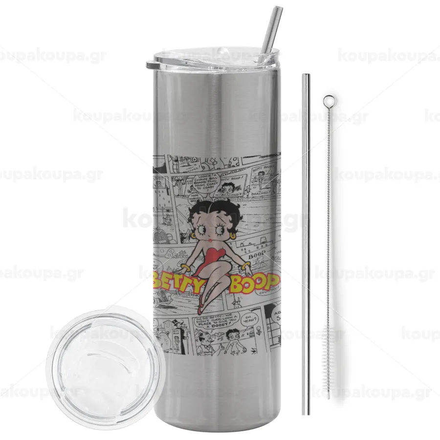 Betty Boop, Tumbler stainless steel Silver 600ml, with metal straw & cleaning brush