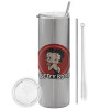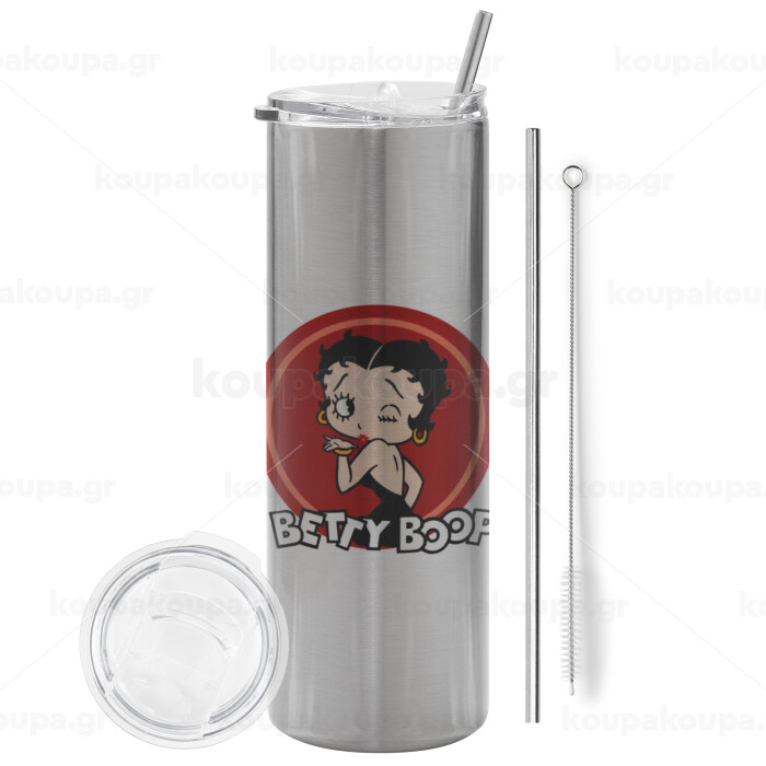 Betty Boop kiss, Tumbler stainless steel Silver 600ml, with metal straw & cleaning brush