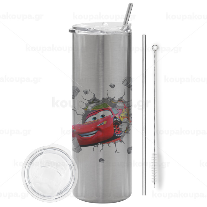 Brick McQueen, Tumbler stainless steel Silver 600ml, with metal straw & cleaning brush