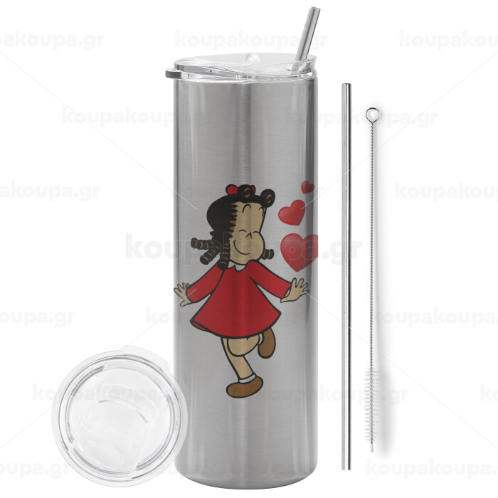 La petite Lulu, Tumbler stainless steel Silver 600ml, with metal straw & cleaning brush