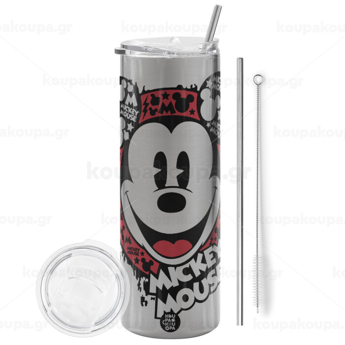 Mickey Mouse, Tumbler stainless steel Silver 600ml, with metal straw & cleaning brush
