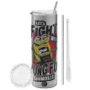 Minions Let's fight with kung fu sounds, Tumbler stainless steel Silver 600ml, with metal straw & cleaning brush