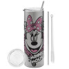 Minnie mouse, Tumbler stainless steel Silver 600ml, with metal straw & cleaning brush