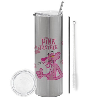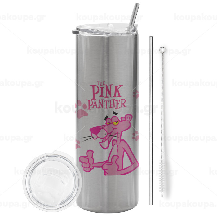 The pink panther, Tumbler stainless steel Silver 600ml, with metal straw & cleaning brush
