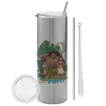 Vaiana, Tumbler stainless steel Silver 600ml, with metal straw & cleaning brush