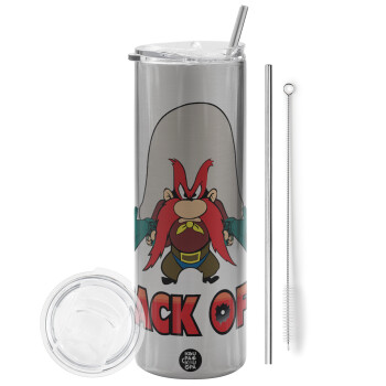 Yosemite Sam Back OFF, Tumbler stainless steel Silver 600ml, with metal straw & cleaning brush
