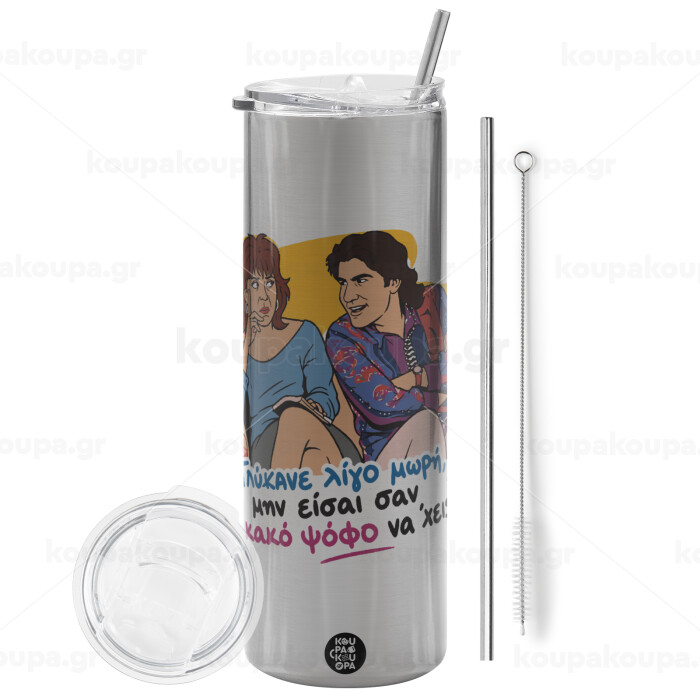 Γλύκανε λίγο, Tumbler stainless steel Silver 600ml, with metal straw & cleaning brush