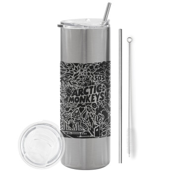 Arctic Monkeys, Tumbler stainless steel Silver 600ml, with metal straw & cleaning brush