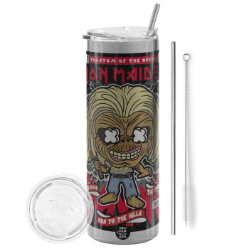 Iron maiden (eddie), Tumbler stainless steel Silver 600ml, with metal straw & cleaning brush