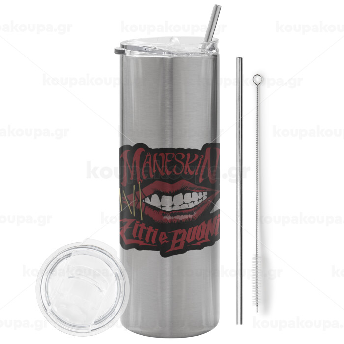 Maneskin lips, Tumbler stainless steel Silver 600ml, with metal straw & cleaning brush
