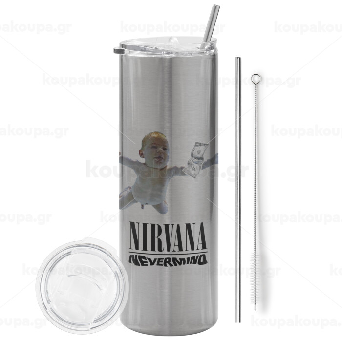 Nirvana nevermind, Tumbler stainless steel Silver 600ml, with metal straw & cleaning brush