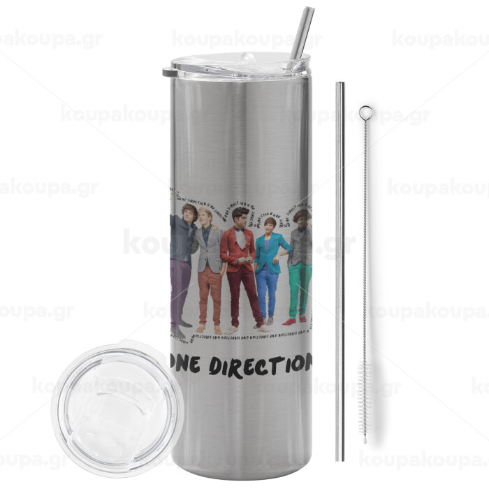 One Direction , Tumbler stainless steel Silver 600ml, with metal straw & cleaning brush