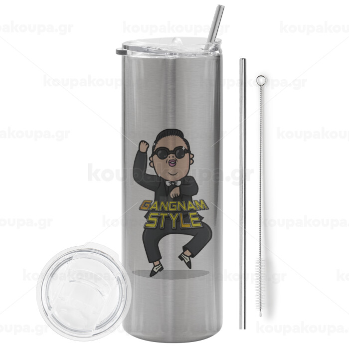 PSY - GANGNAM STYLE, Tumbler stainless steel Silver 600ml, with metal straw & cleaning brush