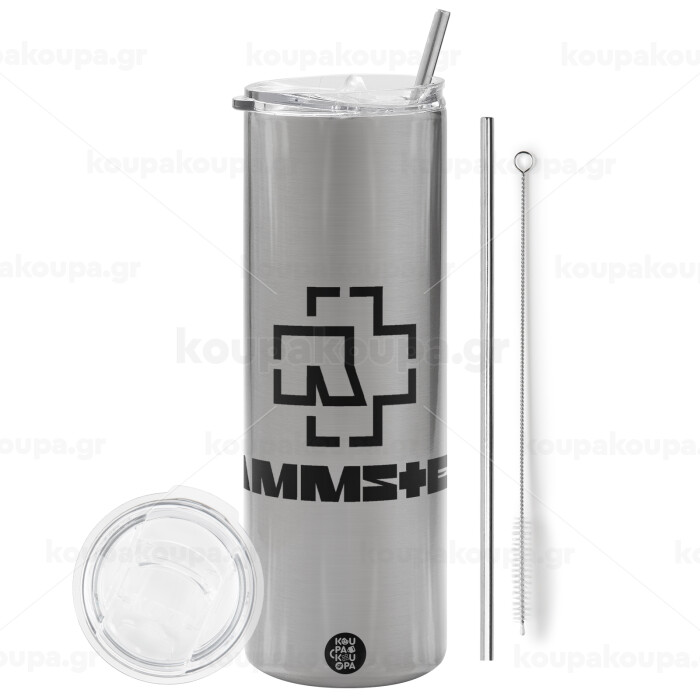 Rammstein, Tumbler stainless steel Silver 600ml, with metal straw & cleaning brush