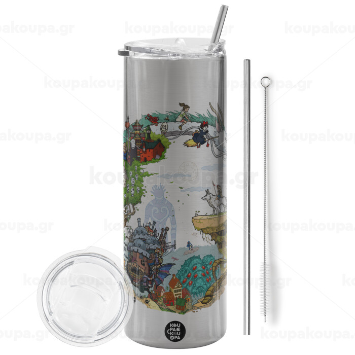 Στούδιο Γκίβλι, Tumbler stainless steel Silver 600ml, with metal straw & cleaning brush