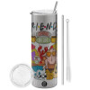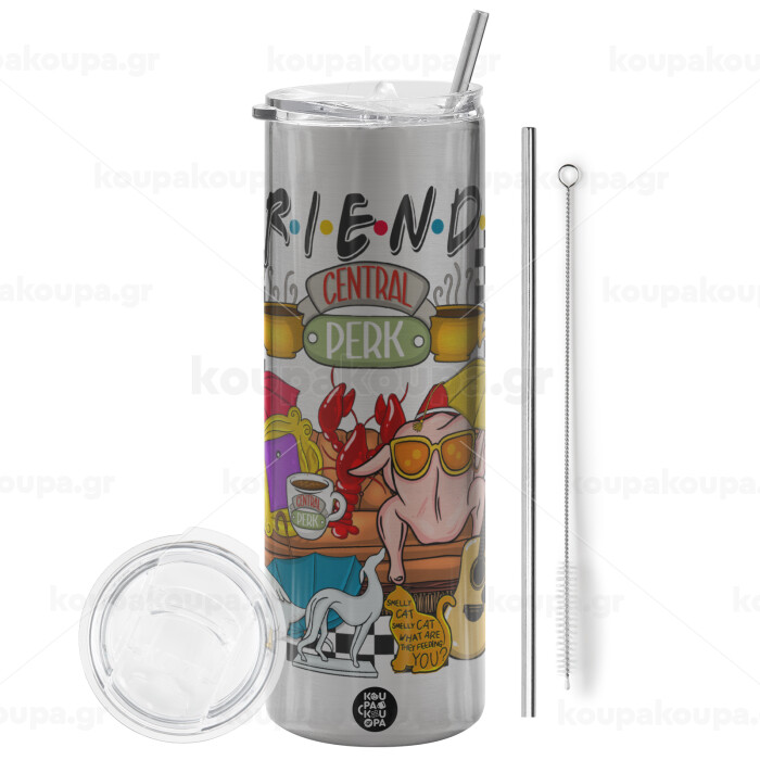 Friends, Tumbler stainless steel Silver 600ml, with metal straw & cleaning brush