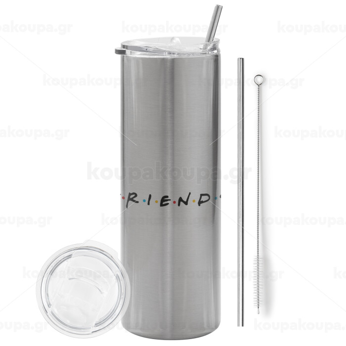 Friends, Tumbler stainless steel Silver 600ml, with metal straw & cleaning brush