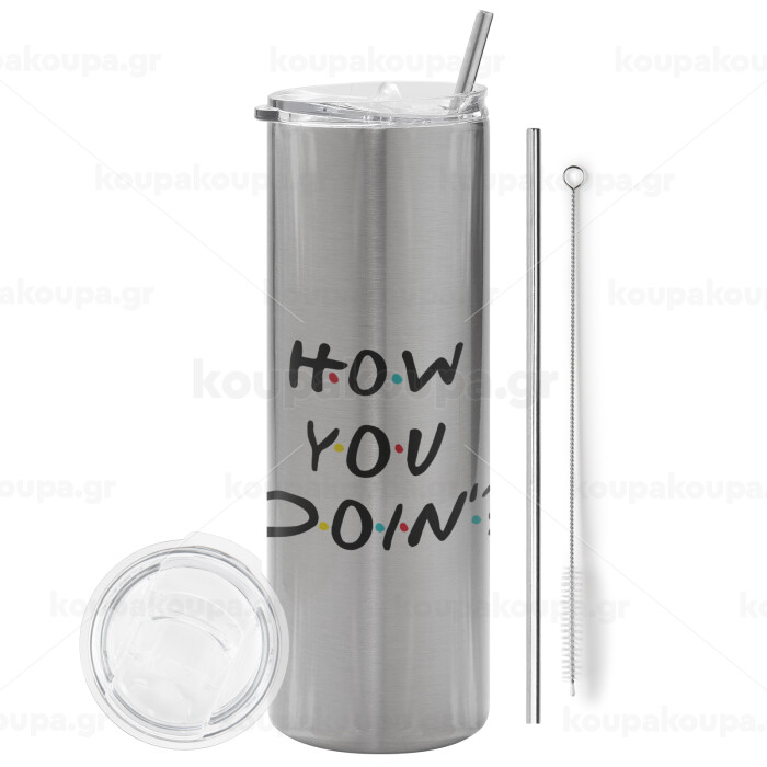 Friends How You Doin'?, Tumbler stainless steel Silver 600ml, with metal straw & cleaning brush