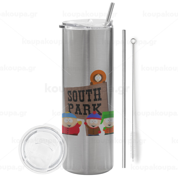 South Park, Tumbler stainless steel Silver 600ml, with metal straw & cleaning brush