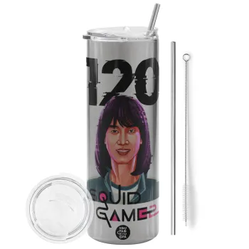 Squid game 120 Cho Hyun-ju, Tumbler stainless steel Silver 600ml, with metal straw & cleaning brush