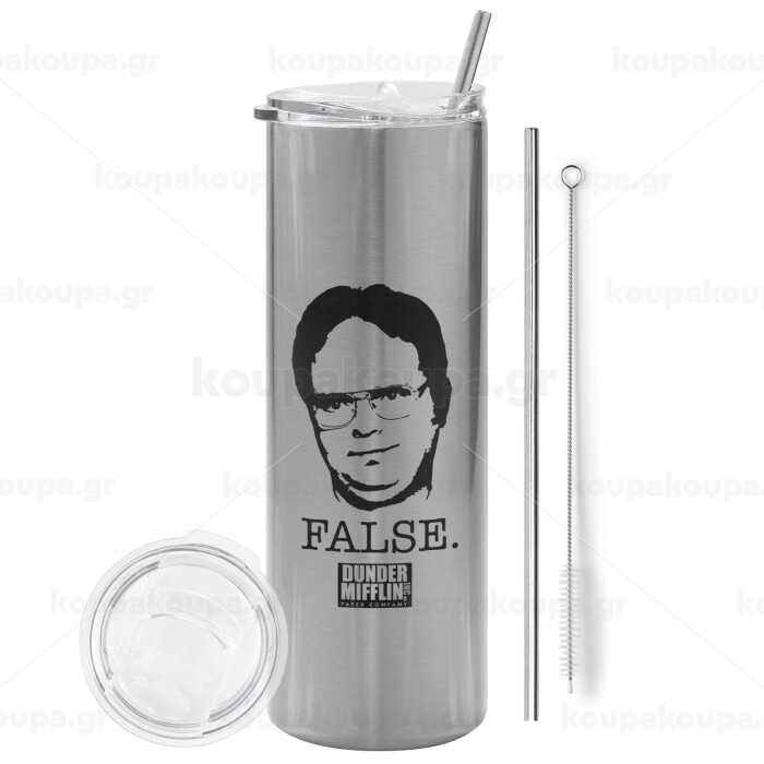 The office Dwight, Tumbler stainless steel Silver 600ml, with metal straw & cleaning brush