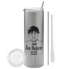 The office Jim Halpert, Tumbler stainless steel Silver 600ml, with metal straw & cleaning brush