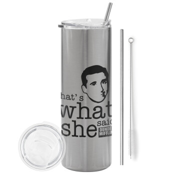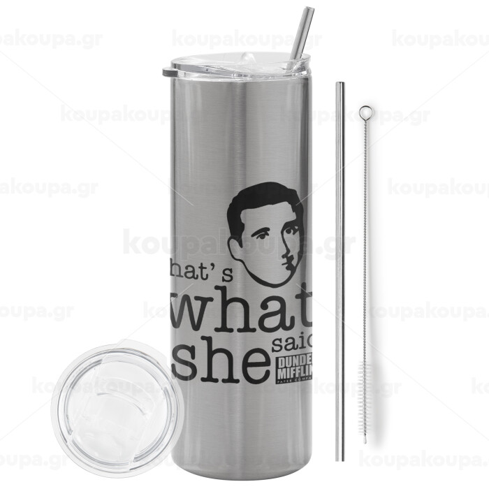 The office Michael That's what she said, Tumbler stainless steel Silver 600ml, with metal straw & cleaning brush