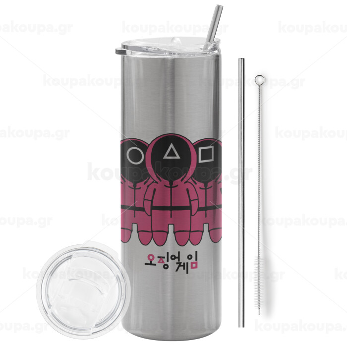 The squid game, Tumbler stainless steel Silver 600ml, with metal straw & cleaning brush