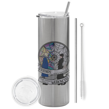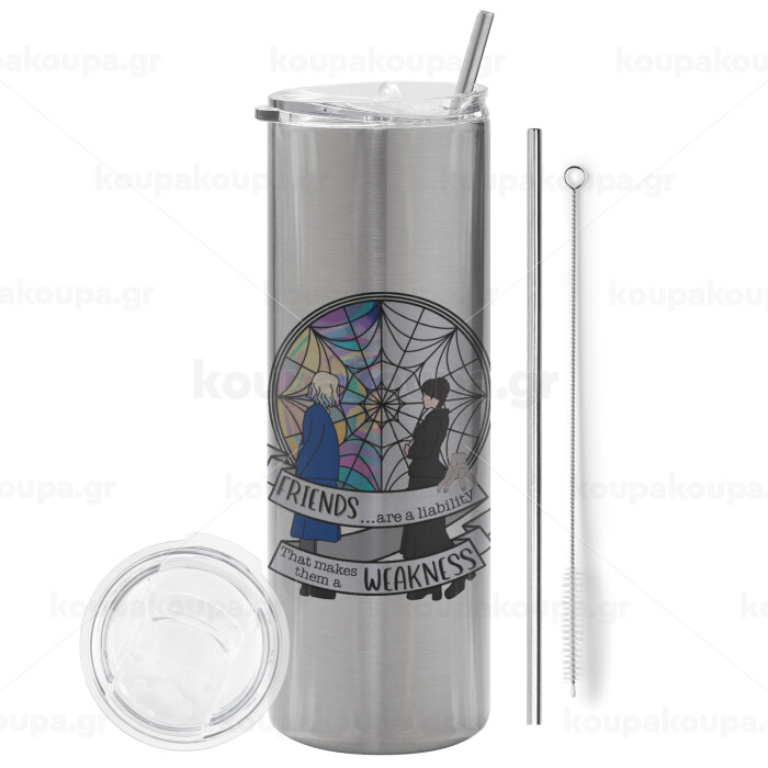 Wednesday window, Tumbler stainless steel Silver 600ml, with metal straw & cleaning brush