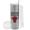 Chicago Bulls, Tumbler stainless steel Silver 600ml, with metal straw & cleaning brush