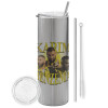 Karim Benzema, Tumbler stainless steel Silver 600ml, with metal straw & cleaning brush