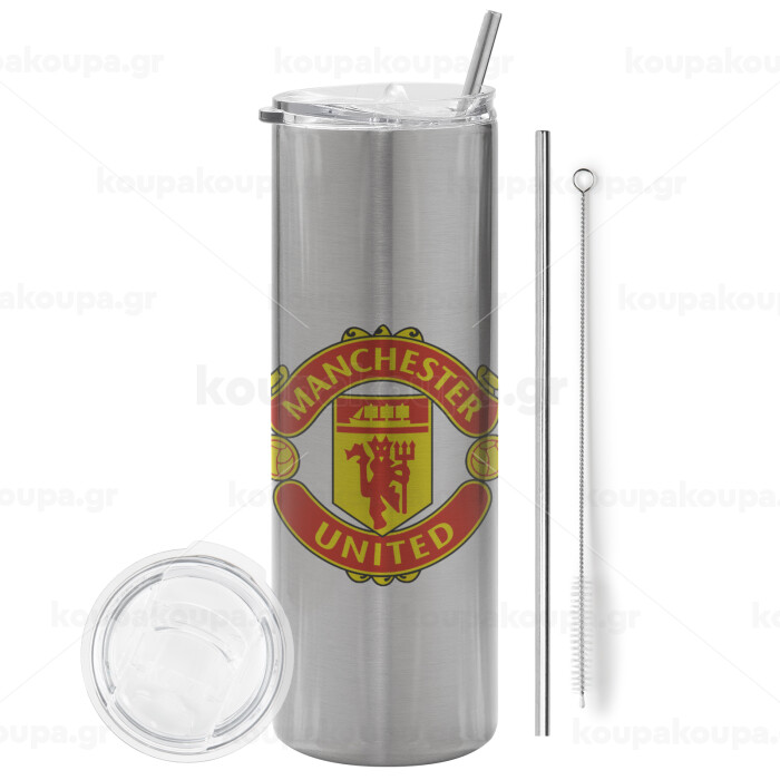 Manchester United F.C., Tumbler stainless steel Silver 600ml, with metal straw & cleaning brush