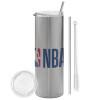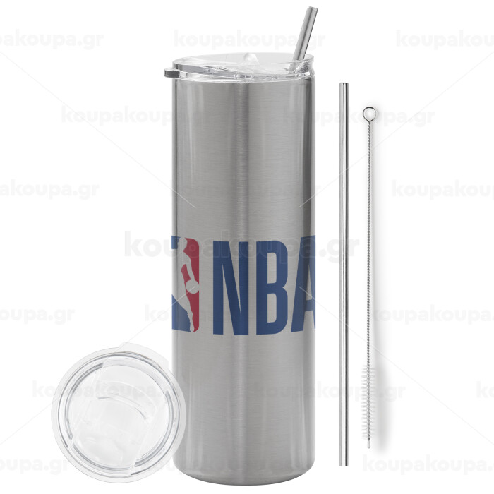 NBA Classic, Tumbler stainless steel Silver 600ml, with metal straw & cleaning brush