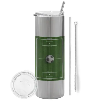 Soccer field, Γήπεδο ποδοσφαίρου, Tumbler stainless steel Silver 600ml, with metal straw & cleaning brush