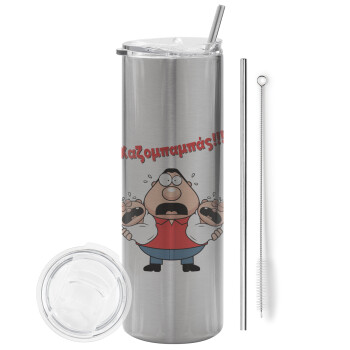 Χαζομπαμπάς σε απόγνωση, Tumbler stainless steel Silver 600ml, with metal straw & cleaning brush