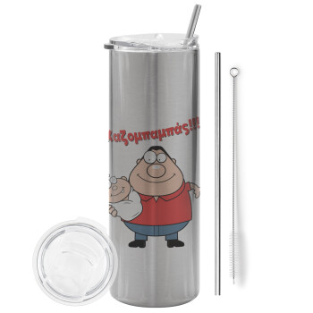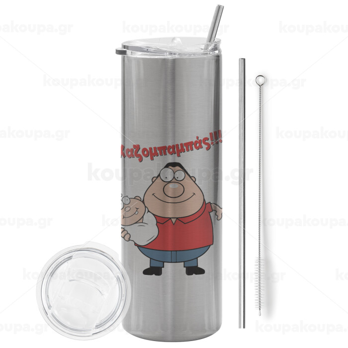 Χαζομπαμπάς, Tumbler stainless steel Silver 600ml, with metal straw & cleaning brush