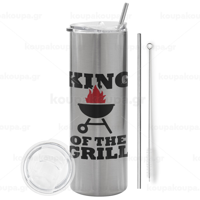 KING of the Grill, Tumbler stainless steel Silver 600ml, with metal straw & cleaning brush