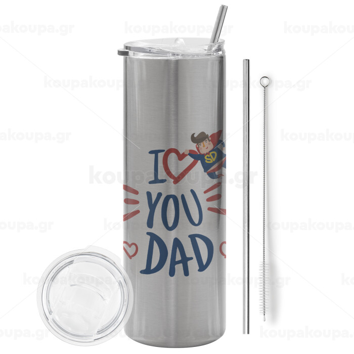 Super Dad, Tumbler stainless steel Silver 600ml, with metal straw & cleaning brush