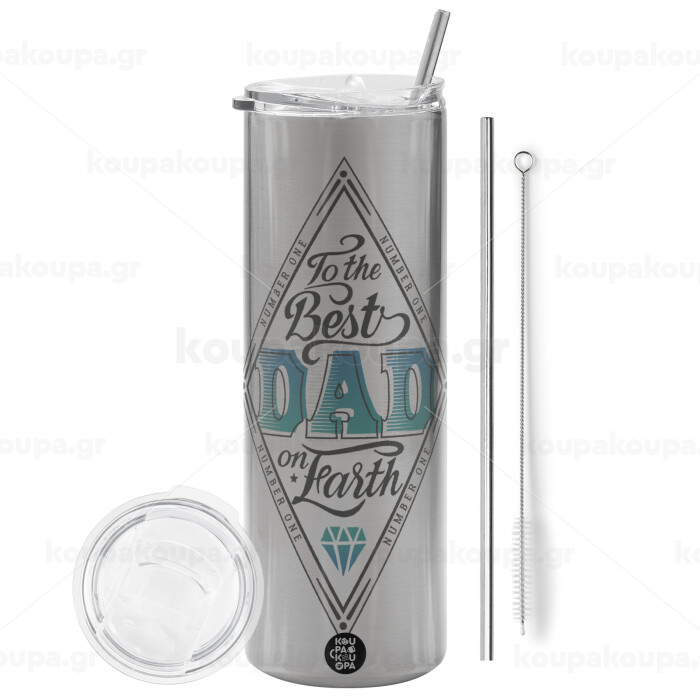 To the best DAD on earth, Tumbler stainless steel Silver 600ml, with metal straw & cleaning brush