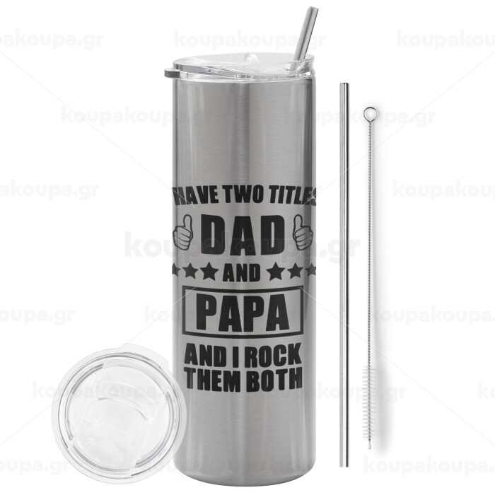 I have two title, DAD & PAPA, Tumbler stainless steel Silver 600ml, with metal straw & cleaning brush