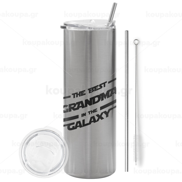 The Best GRANDMA in the Galaxy, Tumbler stainless steel Silver 600ml, with metal straw & cleaning brush