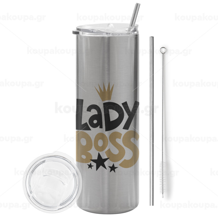 Lady Boss, Tumbler stainless steel Silver 600ml, with metal straw & cleaning brush