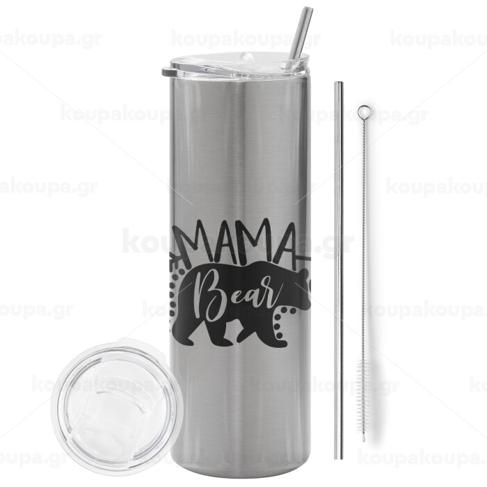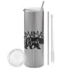 Mama Bear, Tumbler stainless steel Silver 600ml, with metal straw & cleaning brush