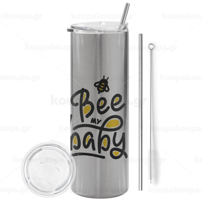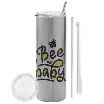 Bee my BABY!!!, Tumbler stainless steel Silver 600ml, with metal straw & cleaning brush