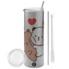 Bubu & Dudu, Tumbler stainless steel Silver 600ml, with metal straw & cleaning brush
