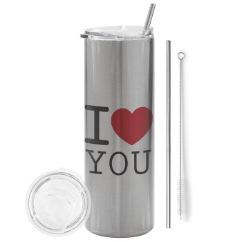 I Love you classic, Tumbler stainless steel Silver 600ml, with metal straw & cleaning brush